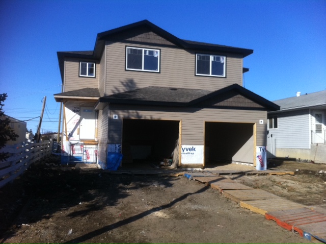 New 2 Storey Open floor plan concept, large master bedroom, with walk in closet and full 4 pc en suite. The basement is unfinished with mechanical room, roughed in bathroom, central vacuum. The front and sides will be landscaped with lawn and driveway.3 bedroom duplex, Half Duplex 2 Storey, 1280 sq .ft. Lot is 25 X 140' Goods Included: Garage opener, Garage Control, Space Saver Microwave, Refrigerator, Electric Stove. 5204 49 Ave Barrhead, Alberta